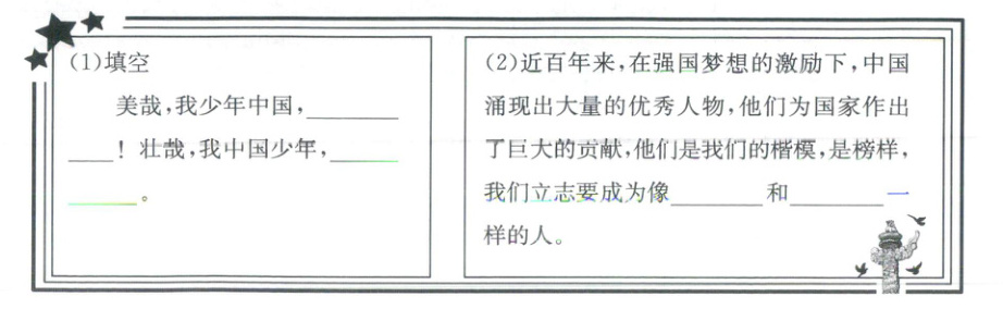 读《少年中国说》,回忆查阅的资料,完成一份手抄小报。