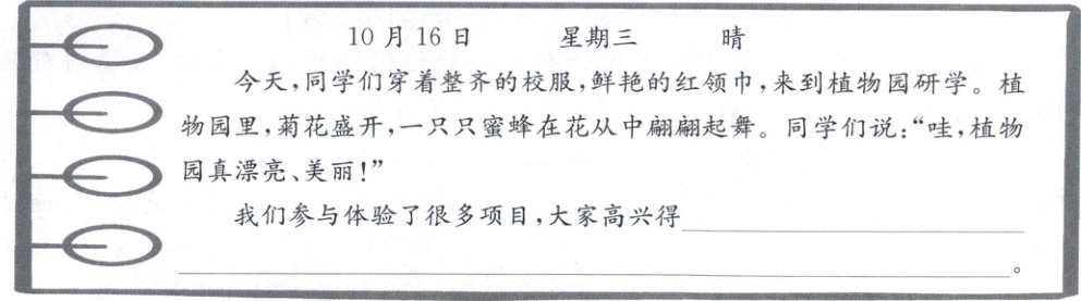 (2)在日记中的横线处补充合适的内容。(2分)