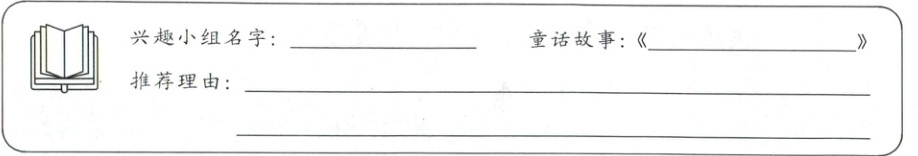 征集令:三年级即将成立阅读兴趣小组,请先给该兴趣小组取个响亮的名字,再推荐一个课外阅读过的童话故事,并写清楚推荐理由。(5 分)