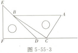 03 一副直角三角尺按如图 5 - 55 - 3 所示的方式摆放,其中点 $ C $ 在 $ FD $ 的延长线上,且 $ AB // FC $,则 $ ∠CBD $ 的度数为