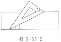 02 如图 5 - 55 - 2,将一块含有 $ 30^{\circ} $ 角的直角三角尺的两个顶点放在直尺的对边上. 如果 $ ∠2 = 44^{\circ} $,那么 $ ∠1 $ 的度数是