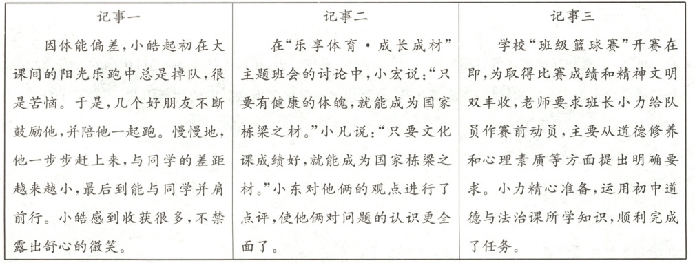 (1)据记事一,体会并指出小皓的收获。(2分)