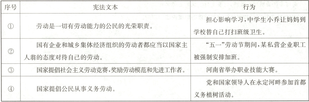 5.劳动是一切幸福的源泉。我国宪法第四十二条中有关于劳动的一些规定。下列行为与我国宪法规定相一致