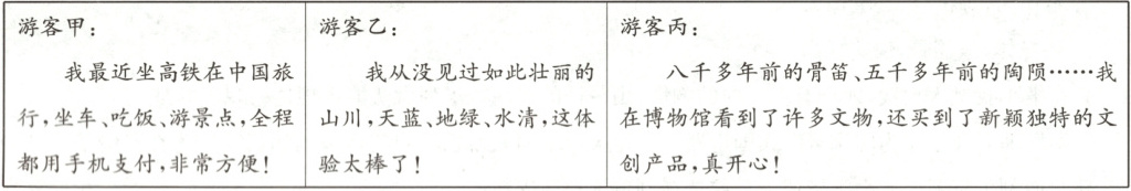 (1)结合国外游客的分享,联系道德与法治课程内容,参考示例简要说明新时代的中国是怎样的中国。(4分。