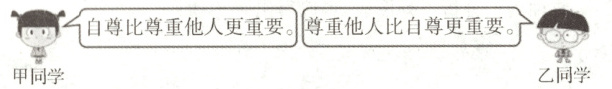 13.甲乙同学的观点都具有片面性。自尊和尊重他人都很重要。自尊是对自我价值的肯定,包括自我尊重和赢得他人的尊重。自尊体现在自信、自强、宽容他人等,自尊是一种良好的心理状态,是一个人德行的具体表现,自尊的青春有光彩。尊重他人,才可能赢得他人的尊重。我们应该学会尊重他人,同时也要尊重自己。