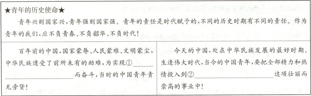 17. 青年是社会中最积极、最有生气的力量,是祖国的未来、民族的希望。为强化同学们作为时代新人的责任担当,某校团委以“奋斗是青春最亮丽的底色”为主题开展系列活动。请你参与其中,完成下列任务。