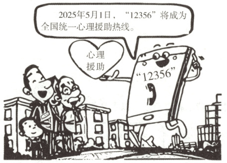 3.漫画中全国统一心理援助热线的开通,这有利于人们解决心理问题,从而促进身心健康发展,这启示我们要守护生命,呵护身心健康,故B说法符合题意;独立思考、文明有礼和行己有耻在漫画中没有体现,漫画中的举措体现的是呵护身心健康,故A、C、D说法不符合题意。故选B。