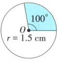 三、先画一个半径是 1.5 cm 的圆,再在圆内画一个圆心角是 100°的扇形,把扇形涂上颜色,并计算这个圆的周长和面积。(6 分)