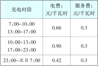 (2)王叔叔在充电站为汽车充电,收费标准及这次的充电信息如下: