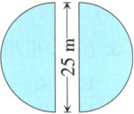 3. 郑州市元旦期间,欣欣一家到街心公园游玩。他们看到街心公园有两块半圆形花坛(如图所示),爸爸量了一下其中一块花坛的直径,并告诉欣欣:这两块半圆形花坛的直径都是25m。