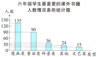 五、课外阅读能拓宽知识面,帮助我们打开视野。为了解学生们的课外阅读情况,语文老师对六年级学生最喜爱的课外书籍进行调查,数据整理如下。(7 分)