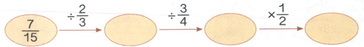 11. $\frac {7}{10}$ $\frac {14}{15}$ $\frac {7}{15}$ 发现:最后的得数与开始的数相等。因为除以$\frac {2}{3}$相当于乘$\frac {3}{2}$,除以$\frac {3}{4}$相当于乘$\frac {4}{3}$,再乘$\frac {1}{2}$,整个过程就相当于$\frac {7}{15}×(\frac {3}{2}×\frac {4}{3}×\frac {1}{2})$,而$\frac {3}{2}×\frac {4}{3}×\frac {1}{2}=1$,即相当于$\frac {7}{15}×1$,所以最后的得数与开始的数相等。