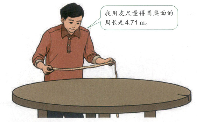 1. 小明的自行车轮子的半径大约是 $ 33 cm $。这辆自行车轮子转 $ 1 $ 圈,大约可以走多远?(结果保留整米数)小明家离学校 $ 1 km $,骑车从家到学校,轮子大约转了多少圈?