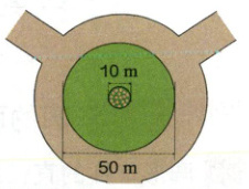 2 一个圆形环岛的直径是 50 m,中间是一个直径为 10 m 的圆形花坛,其他地方是草坪。草坪的占地面积是多少?