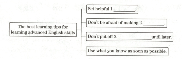You'd better break your final goal into smaller, more achievable steps. A wise goal is realistic and specific to the context you are learning English for. It is also useful to plan how long you plan to spend working on it.2.