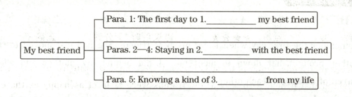 1. D 细节理解题。根据第一段“I can still remember the first day...I hid behind my mother and she hid behind her grandmother,scared of looking at each other.”和第二段“Soon,we lost the shyness and started playing with each other...”可知,这两个女孩第一次见面时躲在她们的家人后面是因为她们都很害羞。故选D。