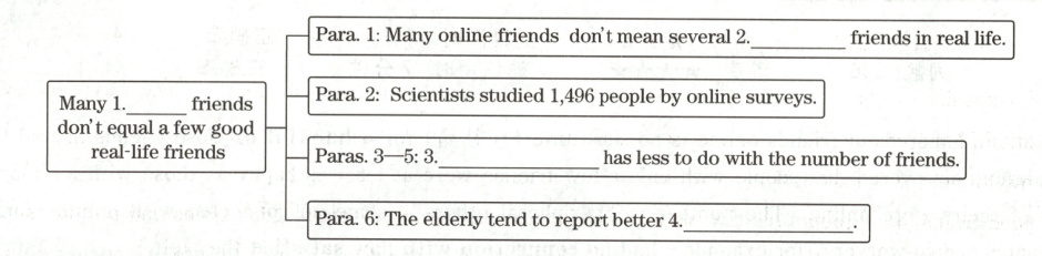 4. C 主旨大意题。通读全文,尤其是根据第一段“Having hundreds of friends online is no substitute (代替品) for a handful of close friends in real life.”可知,文章说明了许多网络朋友比不过现实生活中的几个好朋友。故选C项。