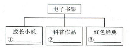 (1)展厅的电子书架中录入了各种类别的名著。请你将下面的六本图书归入电子书架的相应类别中。(填选项)