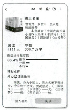 ①根据右图发现,四大名著在微信读书推荐值达到