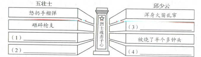 1. 阅读短文并思考:生死时刻,五壮士和邱少云分别是怎么做的?完成图表。
