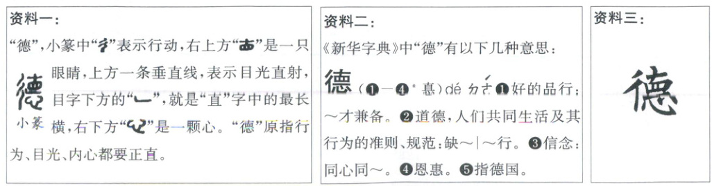 2.根据资料二,为下列语段中的“德”字选择正确的意思。(填序号)(3分)