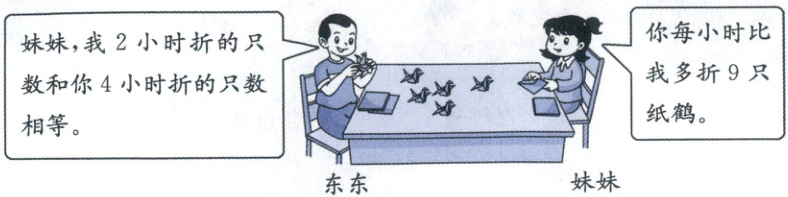 6.分析:2小时东东比妹妹多折(9×2)只纸鹤,而这(9×2)只纸鹤妹妹需要折(4-2)小时。