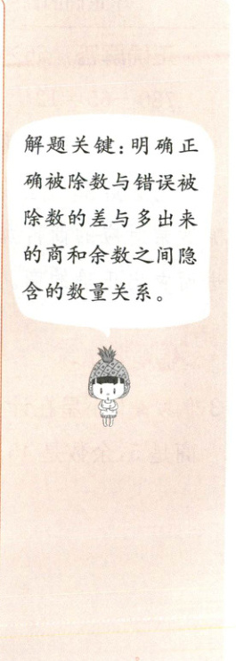 解题关键:明确正确被除数与错误被除数的差与多出来的商和余数之间隐含的数量关系。