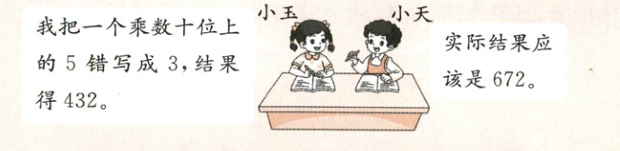 4. 欢欢和乐乐做同一道乘法题,欢欢把一个乘数个位上的5误写成8,得出的积是672,乐乐把同一个乘数个位上的5误写成3,得出的积是552。正确的积应该是多少?