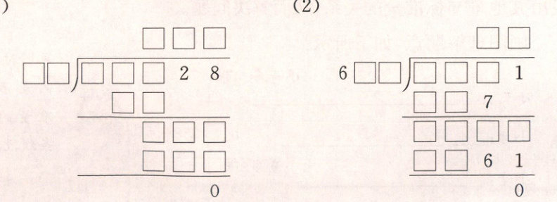 (2) 分析:由商十位上的数字乘6得几7,可知商的十位上是1,除数的个位上是7,商十位上的数字与除数乘积的最高位是6;又由商个位上的数字乘6几7得几61可知,商的个位上是3,除数的十位上是8,这个积是2061,由此可得出完整的除法竖式。