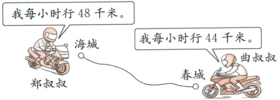 郑叔叔和曲叔叔两人骑摩托车分别从海城和春城出发,相向而行,2小时后两人相遇。海城和春城相距多少千米?