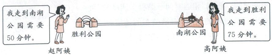 3. 赵阿姨、高阿姨分别从相距3600米的胜利公园和南湖公园同时出发,相向而行,两人需要走多长时间才能相遇?