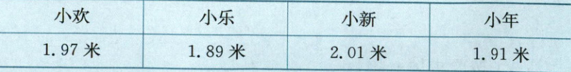 4. 下面是小欢、小乐、小新和小年四人的跳远成绩。