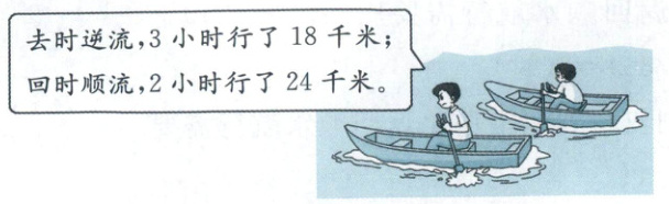 3 难易★★| 有一条船要完成 360 千米的航程运输任务。若顺流而下,则需要 20 小时;若逆流而上,则需要 30 小时。船速和水速各是多少?