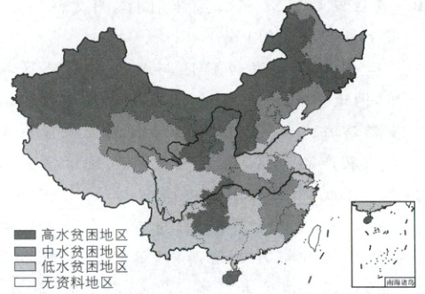 1.B 【解析】本题考查读图分析能力。从图中可知我国农村水贫困程度分布大致与水资源分布状况相吻合。故选B。