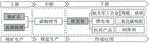 [陕西西安长安一中2025高二开学考]在新能源技术高速发展背景下,全球锂产业链资源端利润暴涨,多国将锂矿资源列为国家战略性资源,并出台一系列保护政策,津巴布韦则全面禁止上游产品出口。我国锂产业链中游产能位居世界前列。但有学者预测,未来我国本土锂产业链中下游企业或将有“抱团”向海外转移的趋势。下图为锂产业链示意图。据此完成下面小题。