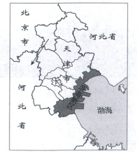 [江西抚州多校 2025 高二联考]天津市滨海新区作为环渤海经济圈的核心区域,是我国北方对外开放门户、现代制造业和研发转化基地及国际航运中心。随着天津市滨海新区快速发展,为缓解土地供应不足问题,当地对滨海地带实施了围海造地工程。下图为天津市滨海新区位置示意图。据此完成下面小题。