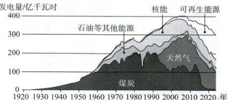 [广东惠州2025调研测试]2024年9月30日,英国关闭最后一家燃煤电站,结束了140多年燃煤发电的历史。下图为1920—2024年英国的电力结构图。据此完成下面小题。