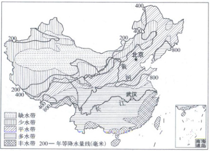[山西临汾2025高二期中]淡水资源是现代社会所必需的战略资源,淡水资源严重短缺导致的资源安全问题,能够动摇国家经济社会发展的物质基础。下图为我国水资源空间丰缺度分布示意图。据此完成下面小题。