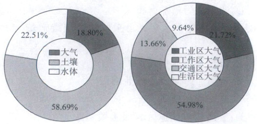热点新题 [河南新乡2025高二期末]邻苯二甲酸酯(PAEs)作为一类广泛使用的增塑剂,凭借其提升材料可塑性、强度和耐久性的特性,被大量添加到玩具、化妆品、食品包装等产品中,然而,PAEs与产品成分结合不紧密,极易释放到水、土壤和大气等环境介质中,引发广泛的环境污染问题。如图示意我国各介质中PAEs含量占比情况。