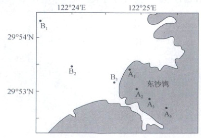 [黑龙江牡丹江2025高二月考]海底地下水排泄是指沿海地区地下水挟带陆源物质向海洋输送,是沿海海域氮、磷等营养盐的主要来源。浙江省舟山东部东沙湾无河流注入,陆源地下水每年向东沙湾输入大量氮、磷等营养盐。受海域降水和海水运动影响,东沙湾的营养盐浓度存在明显的时空差异。下图示意舟山东部营养盐浓度的采样位置。据此完成下面小题。