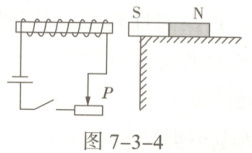 7. 如图7-3-4所示,小郑将条形磁体放在水平的桌面上,并使电磁铁的铁芯与条形磁体处于同一水平面上。闭合开关,下列说法中正确的是()