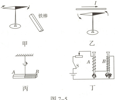 8. 如图7-5所示是一些研究电现象和磁现象的实验。下列关于这些实验的叙述正确的是()