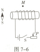 9. 如图7-6所示,通电螺线管上方附近有一点M,小磁针置于螺线管的左侧附近。闭合开关S,下列判断正确的是()
