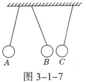 15. 如图3-1-7所示的是三个用细线悬吊着的轻质小球A、B、C的相互作用情况,那么下列说法中正确的是()