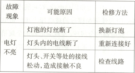 6. 在电工书上,列出白炽电灯的一项常见故障与检修方法如下表。