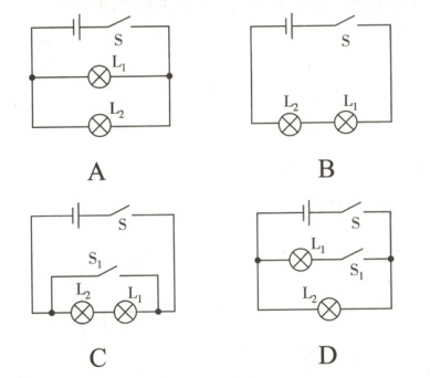 13. 下面电路中,闭合所有开关,两个灯泡都不能发光的电路是()