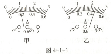 5. 在图4-1-1中,电流表的示数分别为甲图:A,乙图:A。