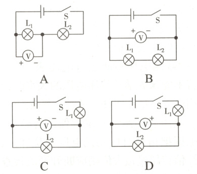 4. 下列电路图中,能正确测出灯泡L₂两端电压的电路图是(