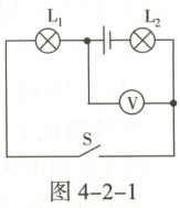 5. 如图4 - 2 - 1所示,当开关S闭合后,电压表测出的电压是(