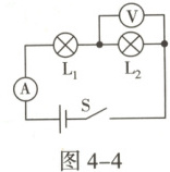 7. 如图4-4所示,两盏相同的电灯在闭合开关后都能发光,过一会儿两盏电灯突然都不亮了,且电压表和电流表的示数均变为零。此时电路发生的故障可能是()